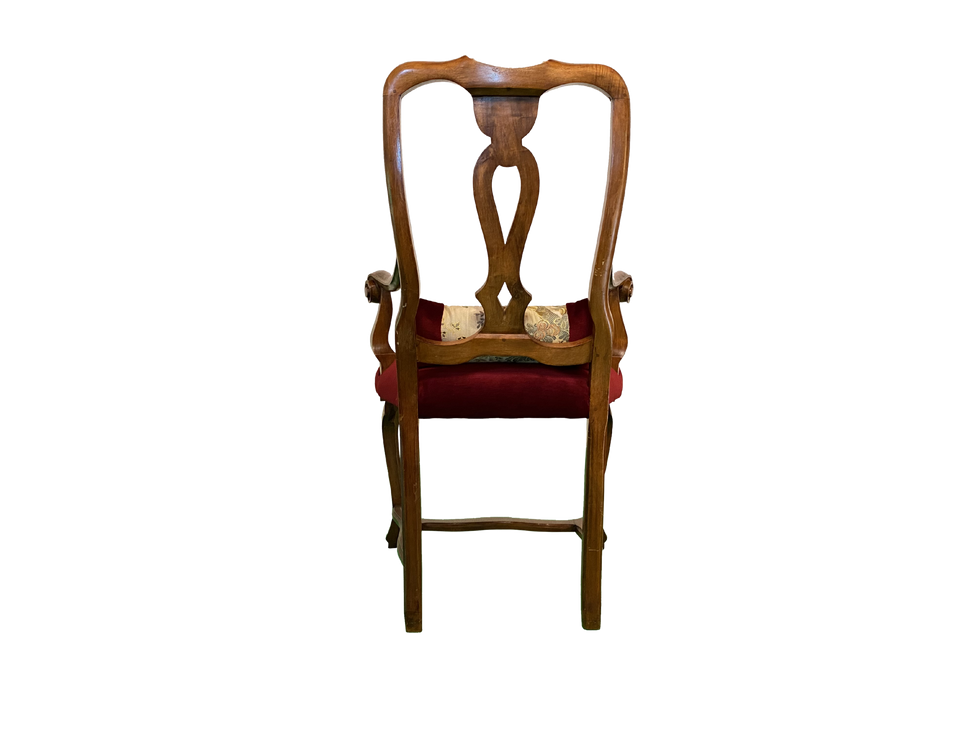 Velvet chair, with ramage insert in silk, viscose and cotton. Entirely handmade.